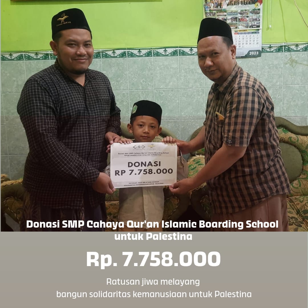 Dalam gerakan donasi Keluarga Besar SMP Cahaya Quran dan PP Cahaya Quran berhasil terkumpul dana sebesar Rp.7.758.000,- rupiah.
