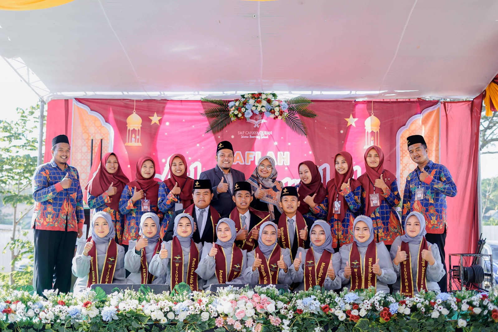 BABAT – Menjelang pelaksanaan wisuda kelas 9, kami tawarkan ke mereka. Mau pakai make up profesional atau biasa saja. Pakai bedak standard yang dimiliki dan biasa mereka pakai.