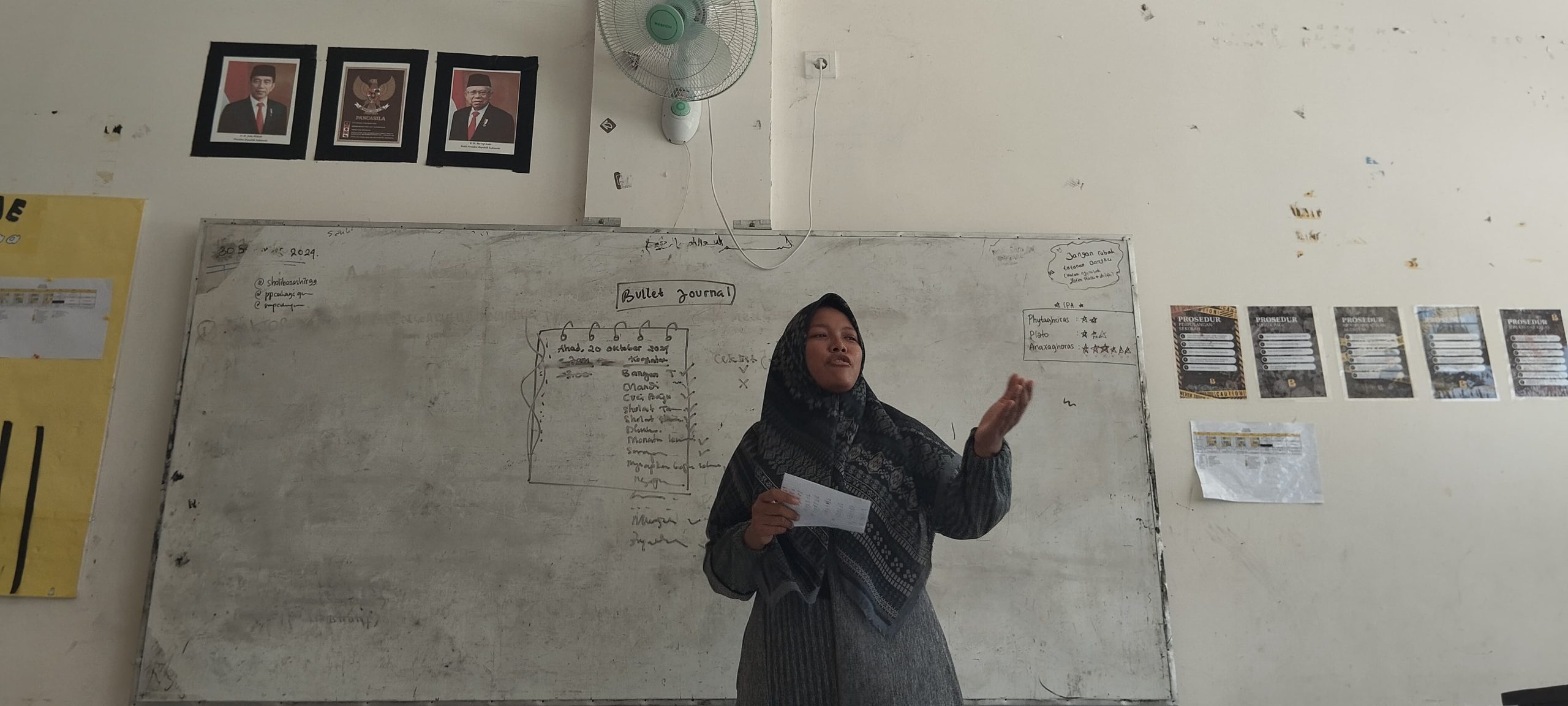 Siswa-siswi SMP Cahaya Quran Islamic Boarding School mendapatkan ilmu baru cara menyusun bullet journal.