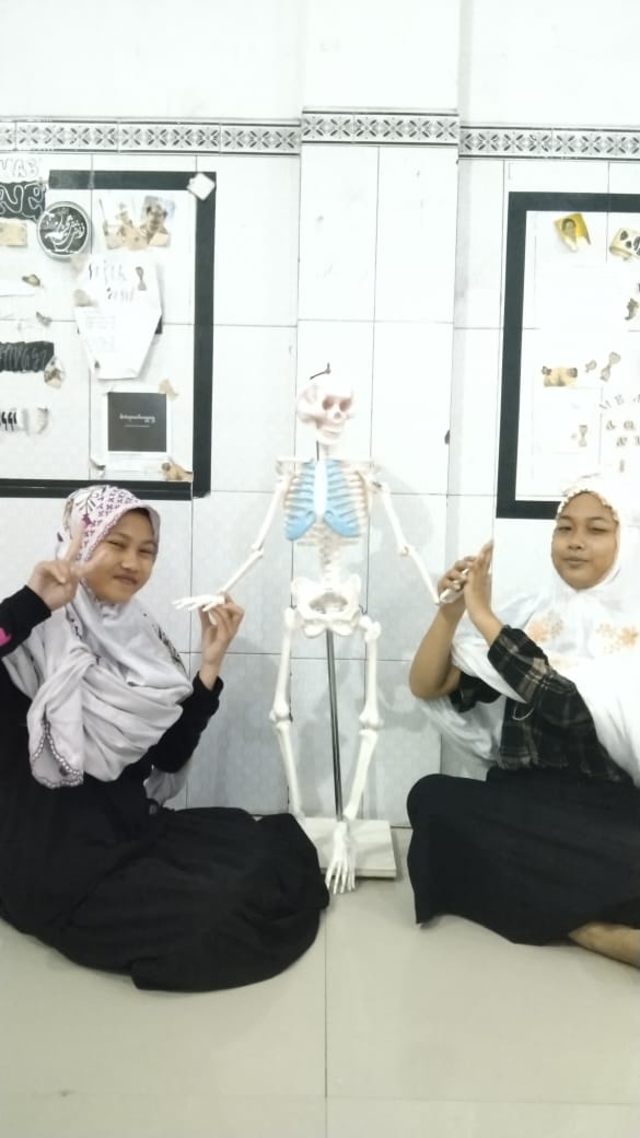 “Ini adalah media pembelajaran baru kita, anak-anak. Mulai hari ini, kalian bisa belajar sistem rangka manusia langsung dari bentuk aslinya!” ucap Ustadzah Sholihatul Mardliyah sambil tersenyum.
